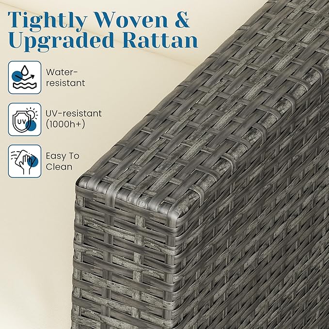 - 【Easy to Assemble & Maintain】Clear step-by-step instructions and all necessary hardware are included for quick assembly. The cushion covers feature smooth zippers for easy removal and machine washing, while the handwoven rattan surface wipes clean effortlessly—keeping your set fresh with minimal effort.