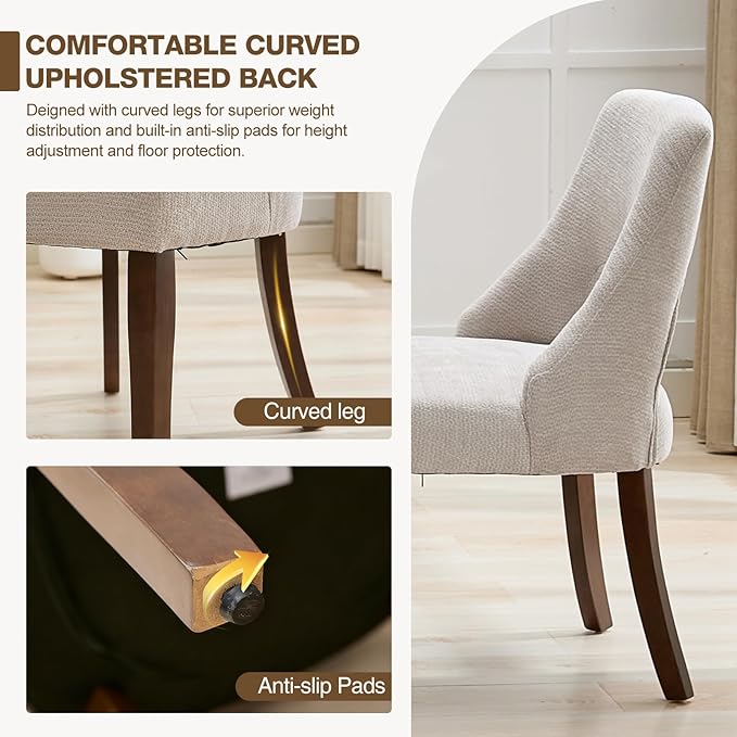 - Modern Upholstered Dining Chairs: With a sleek 19.7 inch height and elegant wood legs, these kitchen chairs add sophistication to both homes and commercial settings. Ergonomic upholstered dining chairs with padded seat offers exceptional support, ensuring comfort during meals or gatherings. A perfect blend of style and comfort for any dining space