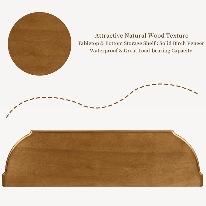 - Excellent Structure: Produced in Vietnam,this half-moon console table has a sturdy construction.The drawer frames and table legs are made of solid pine wood.The tabletop and shelf are veneered with birch wood. Exceptional Load Capacity: Table Top: 330 lbs; Lower Shelf: 110 lbs; Single Upper Drawer: 17.63 lbs; Single Lower Drawer: 33 lbs, ensuring outstanding stability.