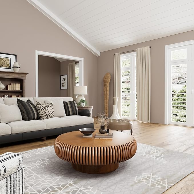 - Warm Natural Wood Finishes: Walnut finish highlights the natural wood grain. Designed as a center table for living room, its drum coffee table silhouette seamlessly blends with farmhouse, rustic, or contemporary decor. The space-saving design provides ample surface as a functional coffee table round or decorative accent