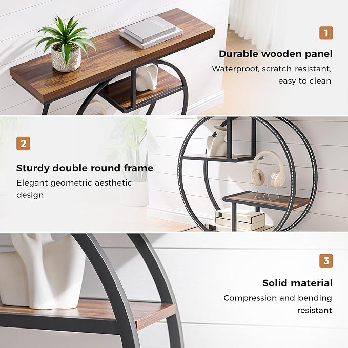 - 【 4-Tier Storage Space】This industrial entryway table adopts a 4-tier open design, provides an extra storage space and display platform for your favorite decorations, photos and books in an orderly manner, giving you both style and function in one compact design and making it a truly unique and eye-catching centerpiece in the hallway.