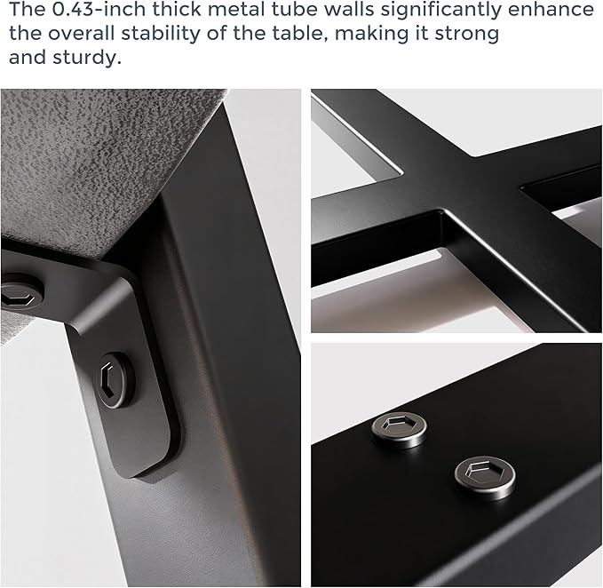 - Solid & Durable Materials: The carbon steel frame features a sturdy 0.43-inch thickness, and the 0.6-inch MDF tabletop is strong, heat-resistant, scratch-resistant, and waterproof. Every component is carefully inspected to meet quality standards. Adjustable foot pads enhance stability and help protect your floors.
