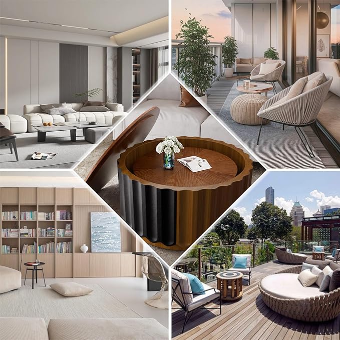 - Multifunctional Use: This modern drum side table end tables adopt wood and MDF material, Multi-step finish process achieves both good looks and superior durability. Inlaid two-piece set can be used together or divided into different parts. The large round coffee table is hollowed out, so you can put the small coffee table inside when you don't need it to save space.