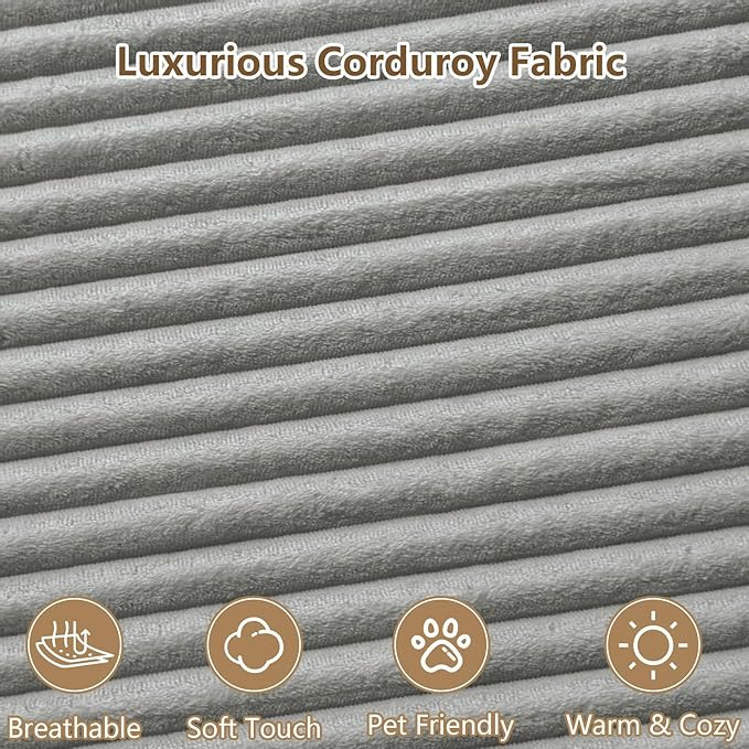 - Premium Corduroy Fabric: Soft & Easy-Care, Wrapped in high-quality corduroy, the sofa delivers unrivaled softness and warmth. The upgraded material boosts breathability and stain resistance—easy to clean and maintain. Its unique texture and gentle sheen stand out, while keeping you cozy in every season.