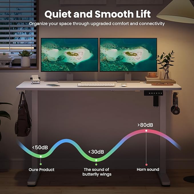 - Smooth Lift: Shift from sitting to standing in near silence. With a noise level below 50 dB, our motor wonโt startle sleeping pets, interrupt calls, or break your concentration. Glide smoothly between 28" and 47" anytime without disruption.