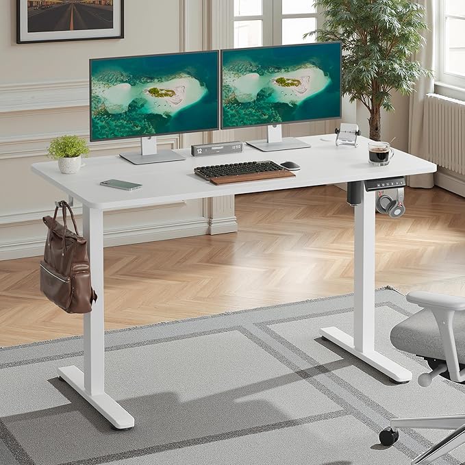 Casaphoria 48 x 24 inches Electric Standing Desk, Sit to Stand Desk with Memory Height Adjustment, Home Office Computer Desk for Writing and Games, White