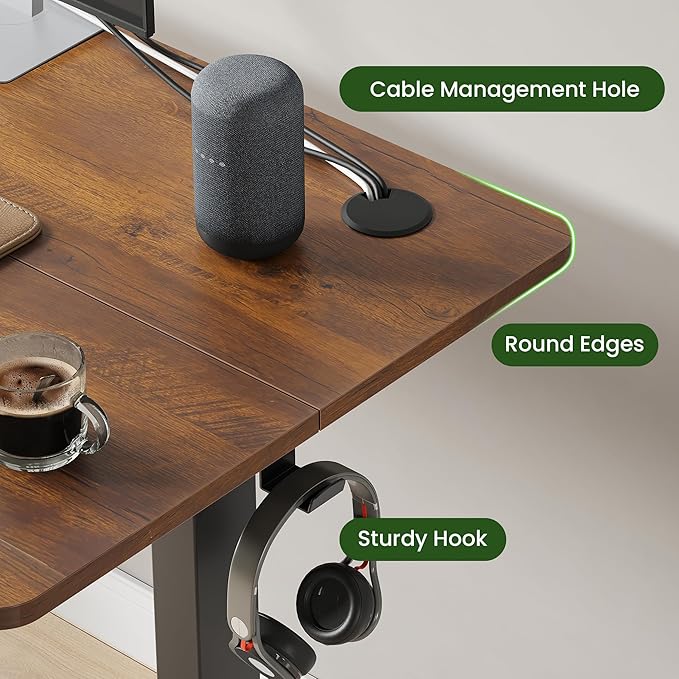 - Ergonomic Health: Effortlessly switch between sitting and standing with our electric standing desk. This simple change can help ease back pain, boost circulation, and keep you energized all day, making your home office a hub for both productivity and well being.