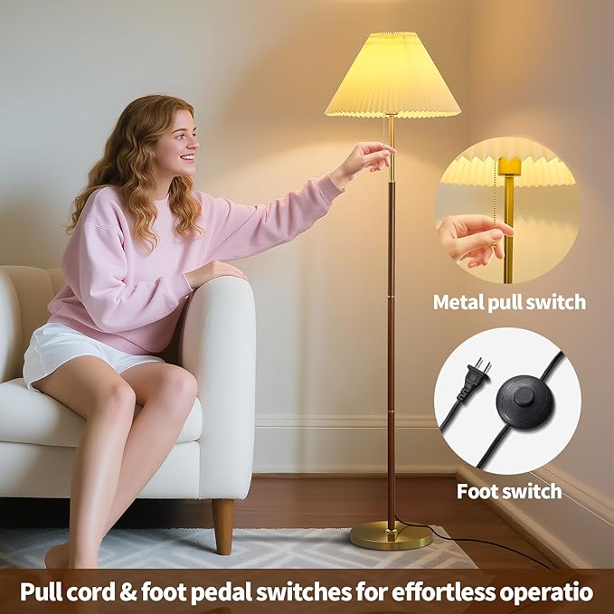 - Elegant Design & Stable Base: This vintage floor lamp boasts a chic pleated shade and a Walnut metal body. The weighted, golden base prevents shaking, making this tall floor lamp both a stylish home decor piece and a safe, sturdy standing lamps for living room or bedroom option.