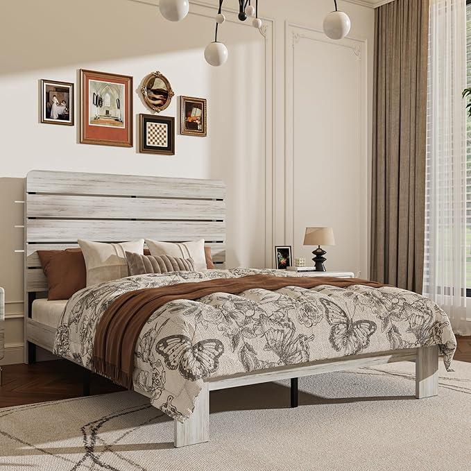 - 【Sturdy and Stable Structure】The wooden bed frame features reinforced premium metal and an extra-wide, stable slat support system, ensuring safety and durability. It provides a robust and reliable support structure with a weight capacity of up to 1000 pounds. Sturdy and stable, it prevents slipping and eliminates the need for a spring mattress.
