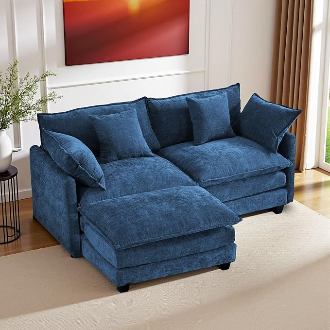 77" Cloud Chenille L-Shaped Sofa with Ottoman | Space-Saving Apartment Couch with 29.1" Deep Seat & Footrest | FSC Certified Solid Wood & Metal Frame | Easy Assembly & 1YR Guarantee
