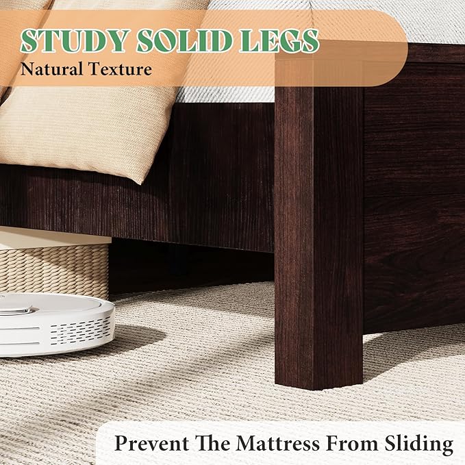 • Premium Wood: Platform bed frame is expertly crafted from sturdy wood, resists warping and cracking for long-lasting durability. Eco-friendly and safe, giving you peace of mind with every use