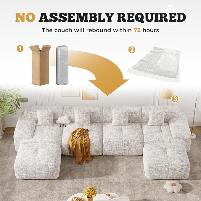 - No Assembly Required: Say goodbye to furniture assembly nightmares with our modular cloud couch! Simply unpack, lightly pat the pieces, and allow the couch to regain its full shape within 72 hours. Enjoy a hassle-free setup and the immediate comfort of your new sofa!