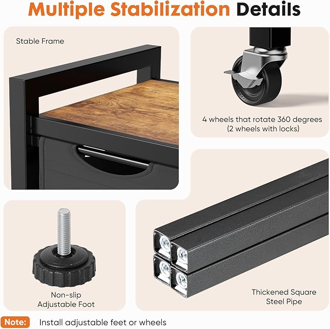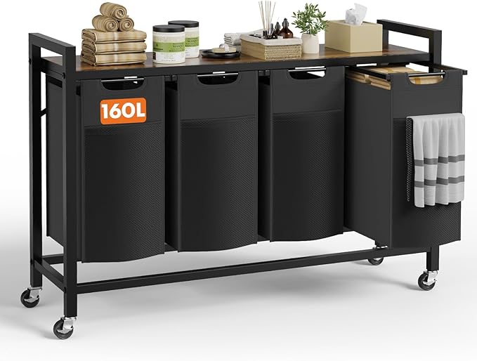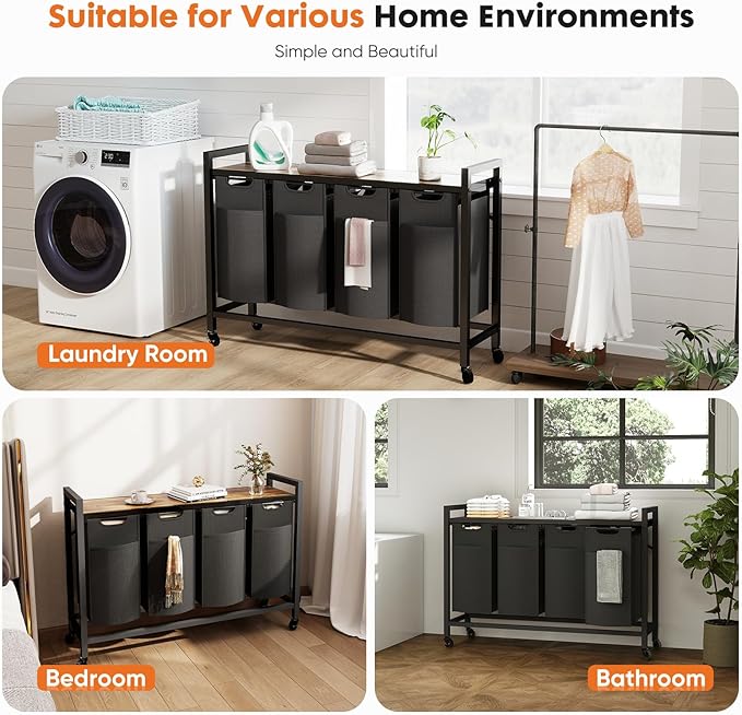 - 【Built to Last with Quality Materials】Made from premium particleboard, a reinforced iron frame, and durable Oxford fabric, this laundry sorter is built for long-term use. Two lockable wheels make it easy to move or secure in place, and four adjustable feet ensure stability on uneven floors.