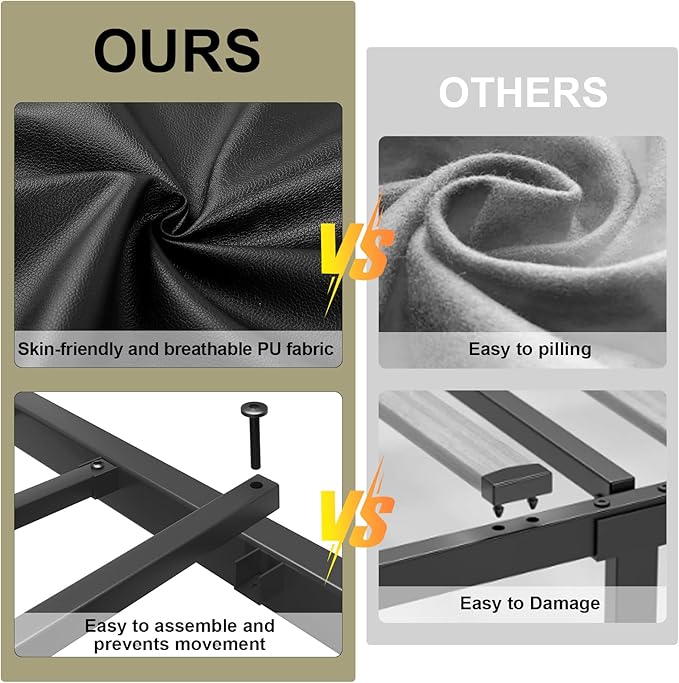 - 【Sturdy Design】The bed frame with headboard is based on a rust-proof metal frame and 12 metal slats and 6 sturdy support legs, which can effectively extend the life of the bed frame without the need for a bulky box spring. The load-bearing capacity is 800 pounds.