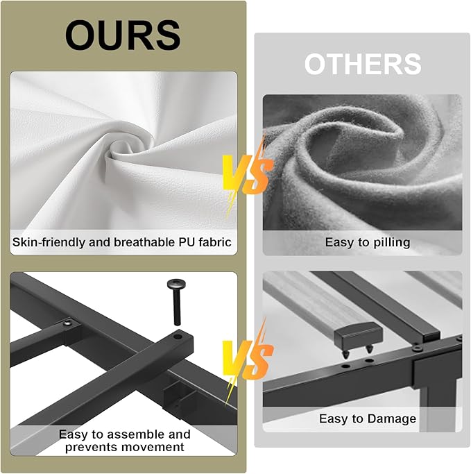 - 【Sturdy Design】The bed frame with headboard is based on a rust-proof metal frame and 12 metal slats and 6 sturdy support legs, which can effectively extend the life of the bed frame without the need for a bulky box spring. The load-bearing capacity is 800 pounds.
