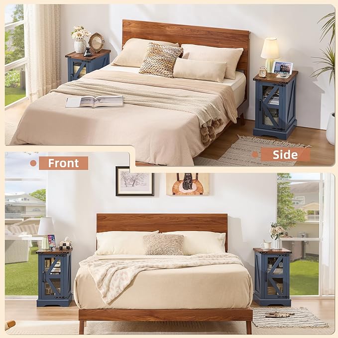 - Well-Designed Narrow Side Table: This narrow night stand is suitable for small spaces while providing excellent storage functionality(adjustable/removable shelf), adding a unique touch to your home. Its elegant glass barn doors and distinctive thick base create a stunning aesthetic, reminiscent of a work of art. No matter the angle, the nightstand exudes captivating visual appeal, seamlessly blending functionality with beauty.