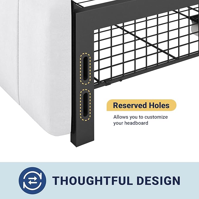 - 【Customizable Headboard】 Designed with reserved holes instead of a fixed headboard, this platfrom bed frame allows you to attach a headboard of your choice. Personalize your sleep space with flexibility and creative freedom