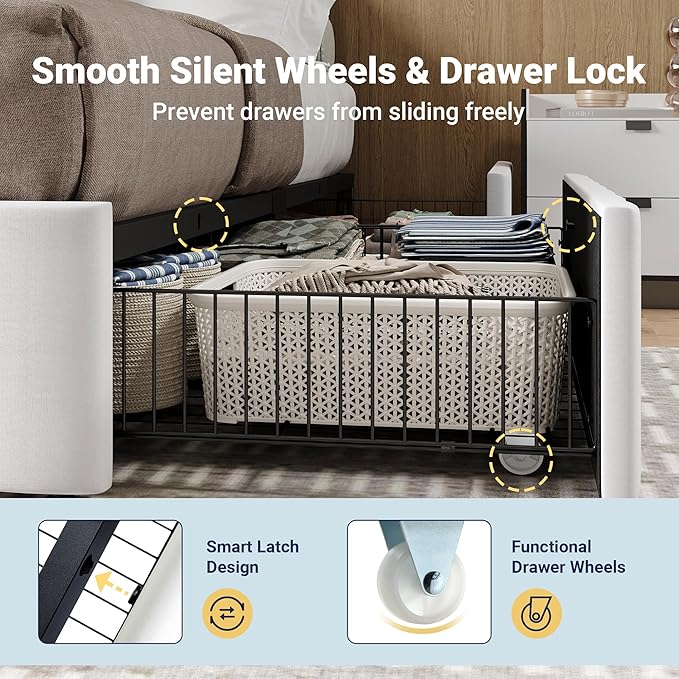 - 【Ample Storage Space】 This full size bed base features 4 large drawers with smooth wheels, offering convenient storage for clothing and personal items. Say goodbye to clutter and maximize your bedroom’s organization and functionality