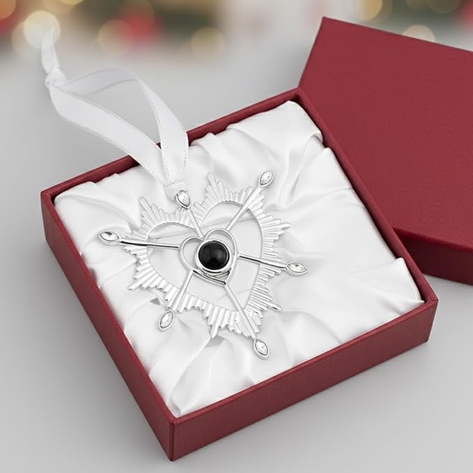 NAZENTI Personalized Christmas Tree Decoration, Custom Family Projection Ornament with Photo, Heart Ornament for Couple, Custom Ornaments with Image Inside for Tree Hanging Xmas for Family