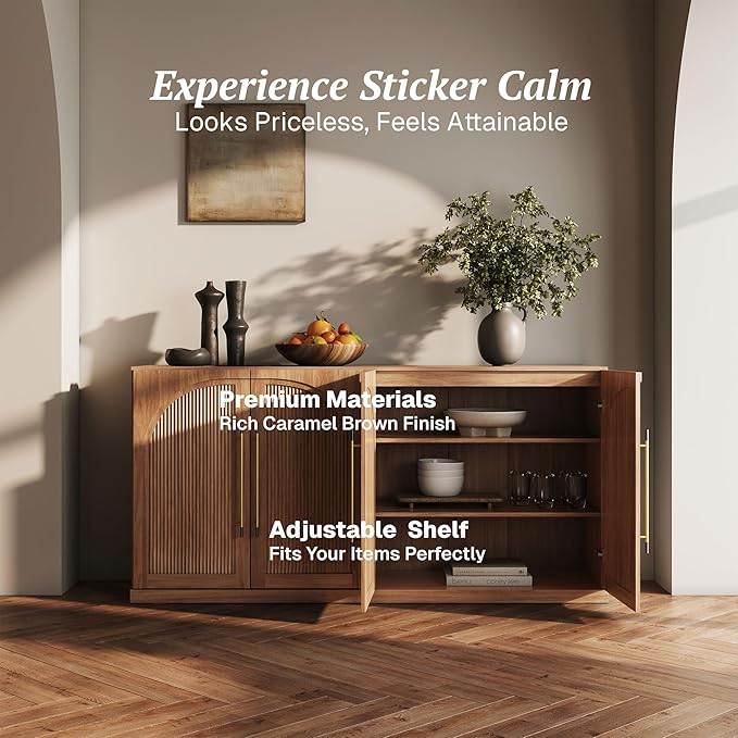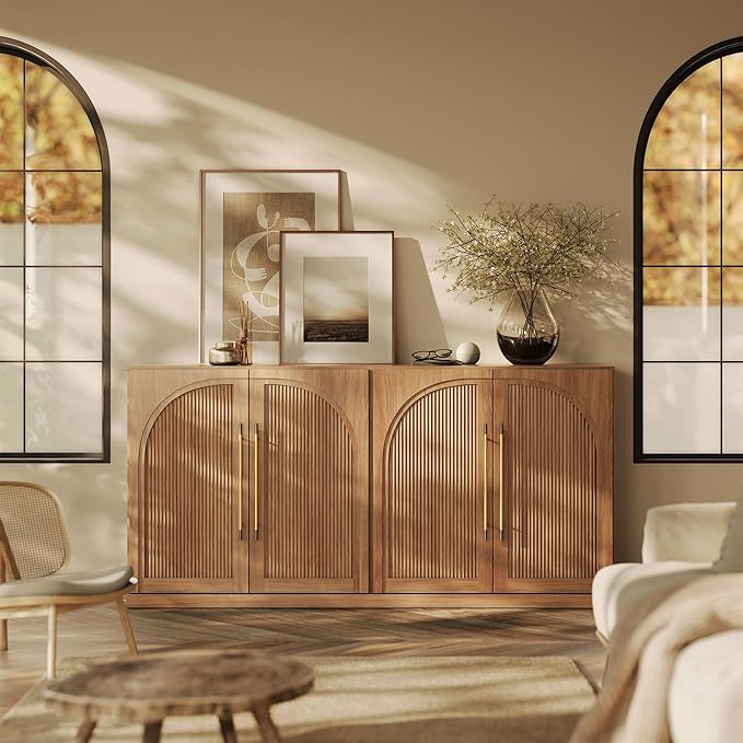 - Distinctive Double-Arc Wood Doors: The sideboard cabinet's wooden doors feature unequal inner and outer arcs, creating a layered, sophisticated look that adds depth and elegance, instantly elevating your arched console table.