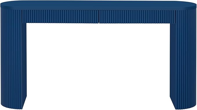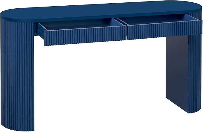 58.2" Entryway Table with Large Top and Dual Drawers,Console Table with Arched Sturdy Legs Stripe Design,Pine Veneer Sofa Table with Adjustable Feet for Living Room, Hallway,Foyer, Kitchen