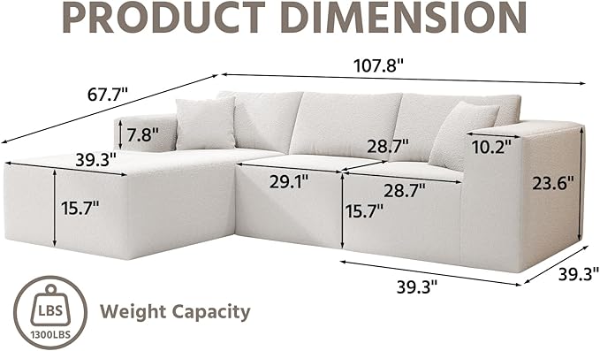 - 【Tips】: Due to the sponge rebound, when just unpacked, the size may deviate from the picture size, after 72 hours of resting, the product size will be restored to the size of the picture.2 packages may arrive separately. If you have any questions about your cloud couch sectional or need assistance, please contact us