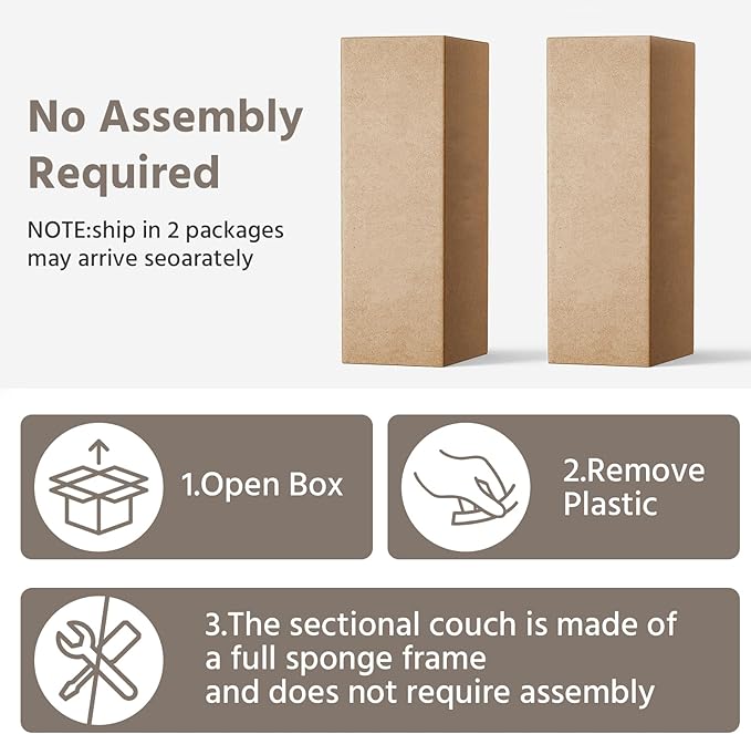 - 【No Assemble Required】: Say goodbye to assembly stress!Unpack the vacuum package, pat the L shape couch, and allow the couch to regain its full shape within 3-7 days. Enjoy a hassle-free setup and the immediate comfort of your new sofa