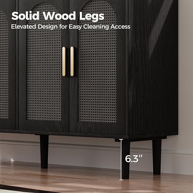 - Rattan-Door Charm: Storage buffet cabinet shines with beautifully crafted rattan-decorated doors. Console cabinet pairs striking aesthetics with reliable use, bringing a modern charm to any space—whether your entryway, living room, or dining spot