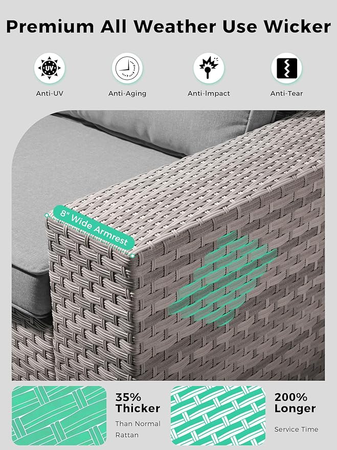- Easy-Clean Care for Lasting Beauty: Keep your wicker patio furniture set looking fresh with ease. The fade-resistant cushion covers are removable and machine washable, allowing for a quick clean. For long-lasting beauty, we recommend storing cushions indoors during extended rain, as the inner foam is designed for comfort, not waterproofing.