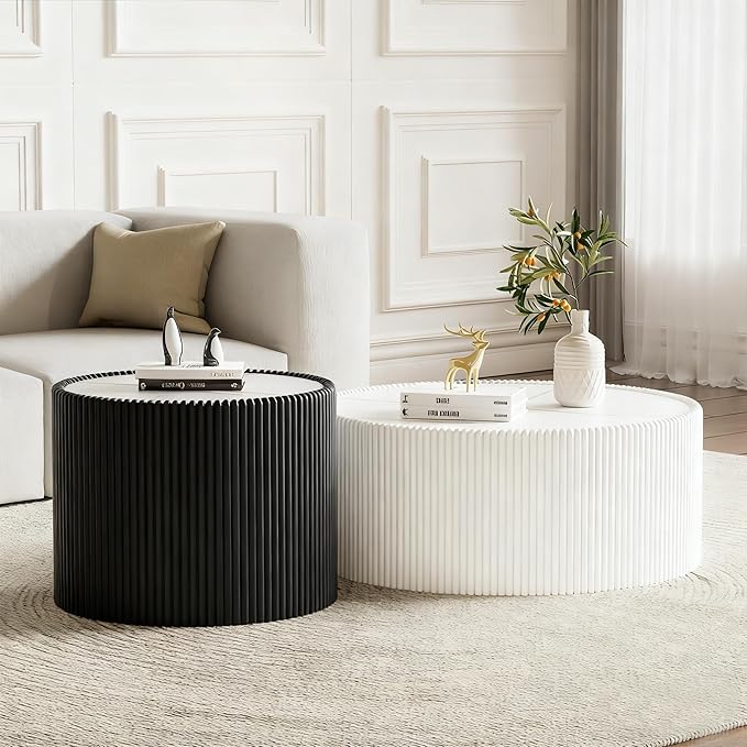- 【Modern Round Coffee Table】Elevate your living space with this modern coffee table round, designed to impress with its stunning drum-shaped look. Cleaning is a breeze – just wipe down with a damp cloth to keep this funky coffee table looking as good as new
