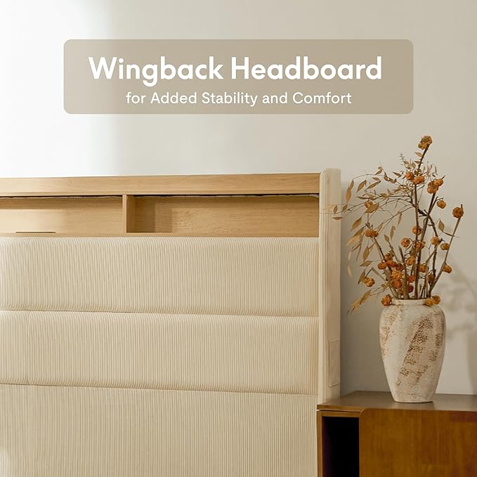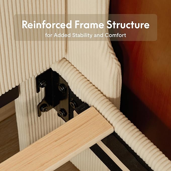 - Soft Corduroy Upholstery for a Warm, Modern Look: Textured corduroy fabric brings a soft, inviting feel and an elevated modern aesthetic that instantly warms up the bedroom and pairs easily with any décor style.