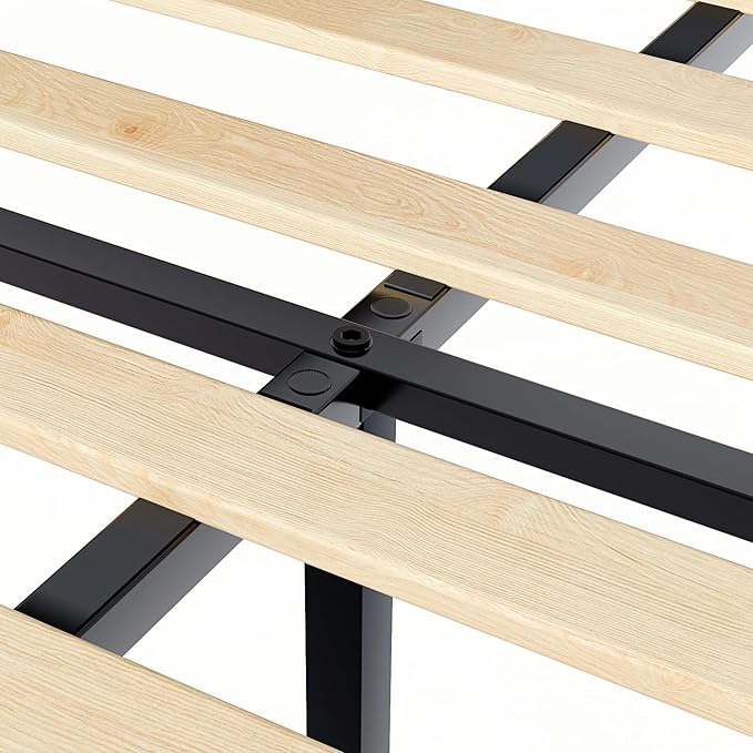 - Durable Materials, Stable Support: Experience unwavering support and peace of mind with queen platform bed frame built to last. Precision-engineered from durable wood and metal, its robust structure—supported by 12 sturdy slats that is supporting up to 800 pounds—remains steadfastly quiet and stable. The solid wood feet ground the design in natural stability, perfectly contrasting the soft boucle, to create a sanctuary where you can relax and sleep in absolute comfort