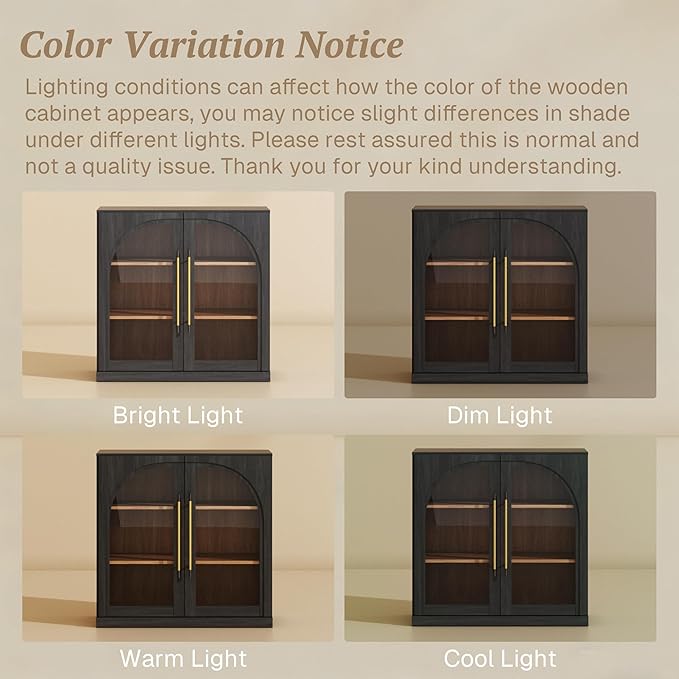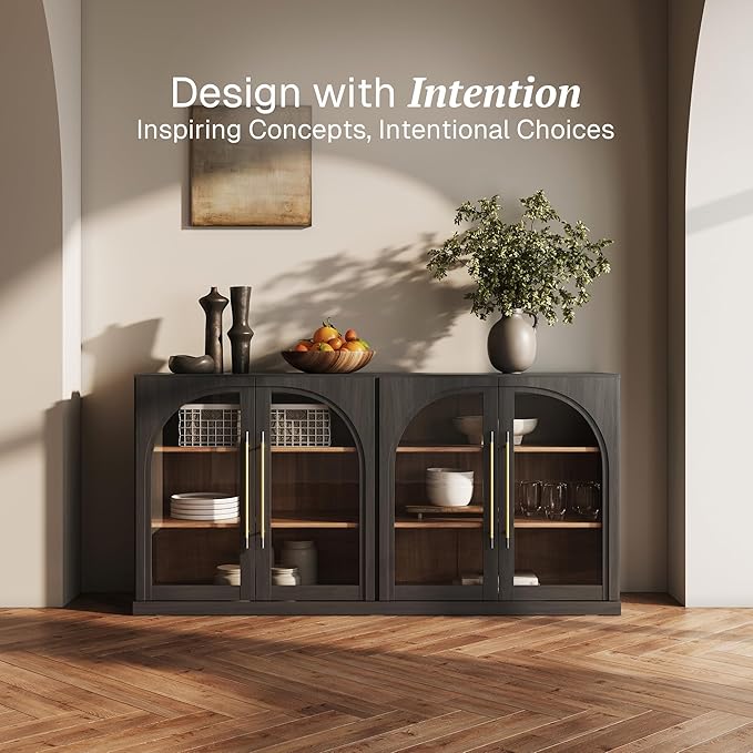 - Classic Modern Design with Arched Glass Doors: Featuring graceful arched glass doors and clean lines, this sideboard buffet cabinet with storage adds timeless elegance while letting you showcase your favorite decor. Available in Camel and Ebony finishes to complement both light and dark interiors.