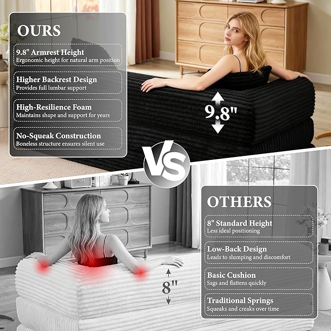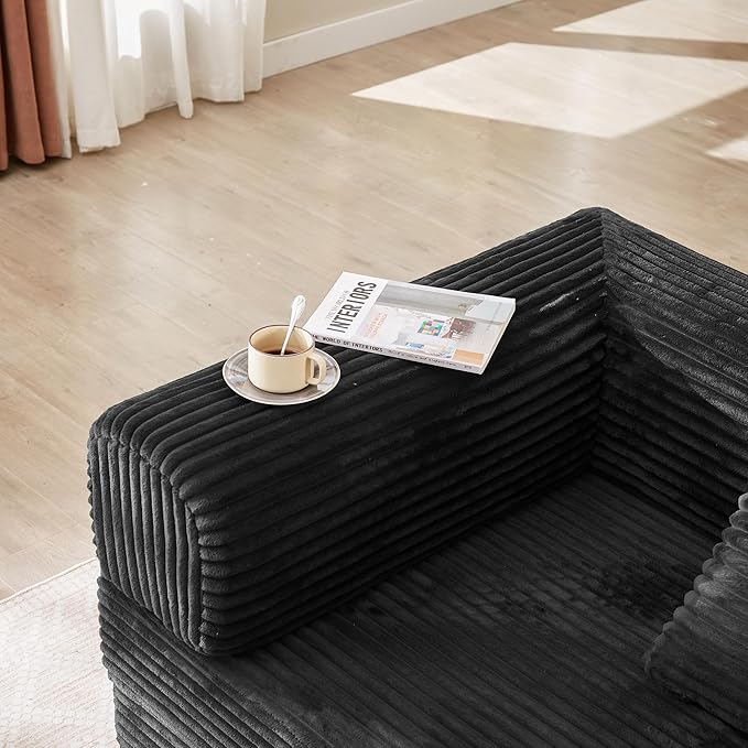 Boneless Couch Sofa Bed Sectional Couches for Living Room,Futon Cloud Couch with Sleeper Sofa,Sofas for Living Room Oversized Corduroy Upholstered (Black)