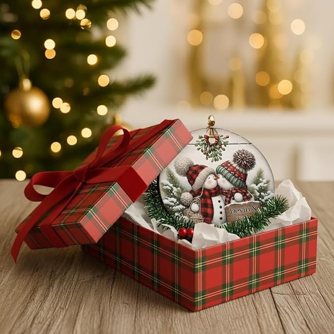 - ☃️ CELEBRATE LOVE: A romantic personalized glass ornament featuring two snowmen representing you and your partner — perfect for couples and newlyweds.