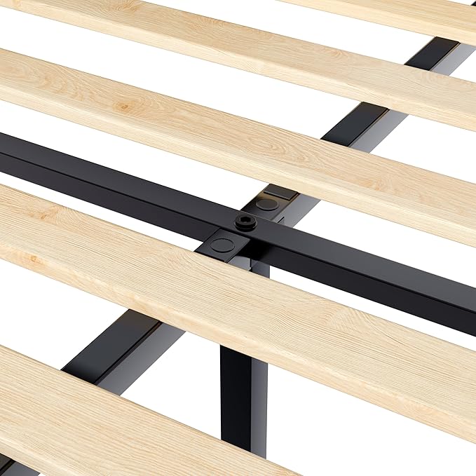 - Durable Materials, Stable Support: Experience unwavering support and peace of mind with queen platform bed frame built to last. Precision-engineered from durable wood and metal, its robust structure—supported by 12 sturdy slats that is supporting up to 800 pounds—remains steadfastly quiet and stable. The solid wood feet ground the design in natural stability, perfectly contrasting the soft boucle, to create a sanctuary where you can relax and sleep in absolute comfort
