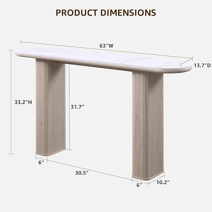- Space-Saving Narrow Profile: Its slim design fits perfectly in tight spaces, making it ideal for foyers or small hallways. With its spacious dimensions of 63β W X 13.75β D X 33.3β H, it fits a variety of spatial needs. The oval edges add a soft, inviting touch, ensuring it complements any room layout without overwhelming the space