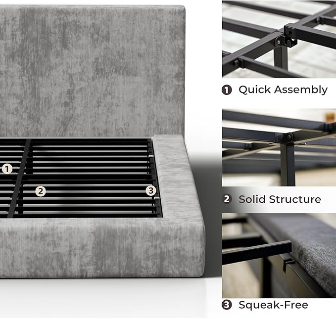 - Squeak-Free Structure: Engineered with a cold-rolled steel frame and non-slip feet, this low profile bed is designed for silent, stable support—offering quiet and comfortable nights.