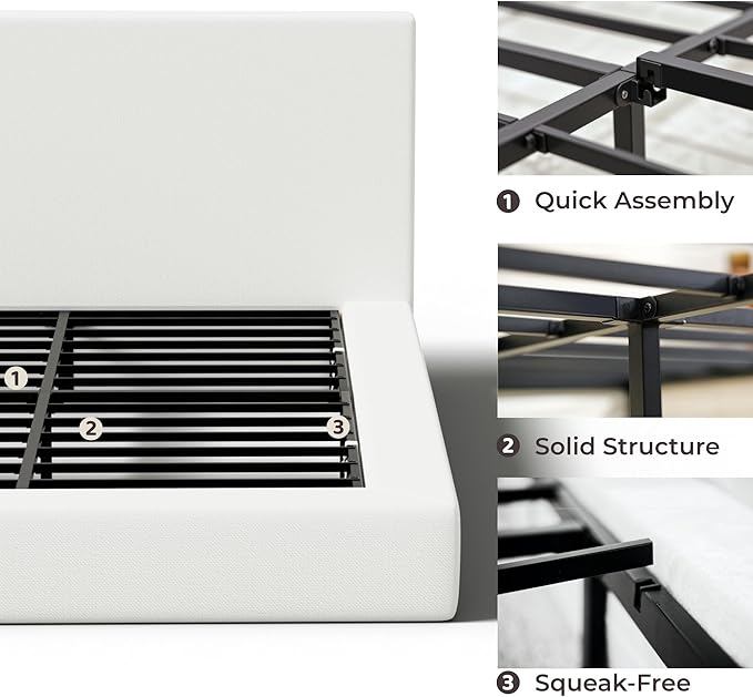 - Quick & Easy Assembly: Unbox and unfold for quick setup. This upholstered platform bed frame with a pre-assembled foam base expands automatically, ready in 5–15 minutes and reaching full firmness within days.