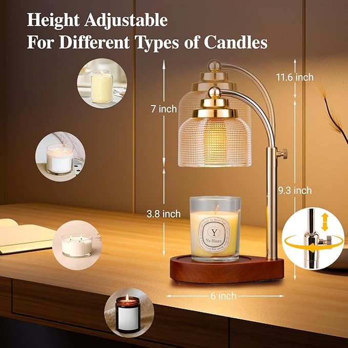 - Adjustable Height - Fits All Size Jar Candles: Our candle warmer supports height-adjustable setting, ranging from 3.8 to 7 inches(the distance from the base to the lampshade). Almost fit all size scented candles. It also features a 6 inch anti-slip base to ensure your candles stand stability.