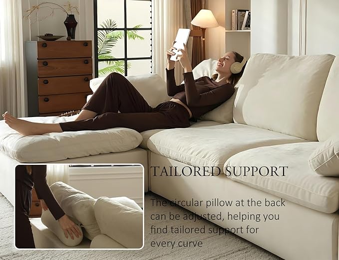 - 【Adjustable Back Support】Release all pressure with the enhanced supportive boneless sofa. The high-filled backrests and seat cushions ensure ergonomic support, cradling your body. The innovative backrest design features adjustable height, helping you find tailored support for every curve