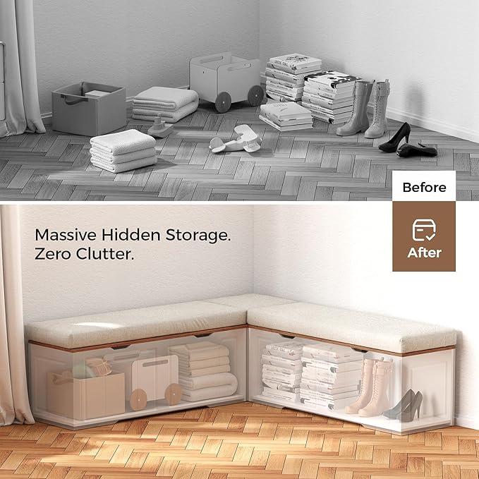 - Hidden Storage That Actually Works: Tired of clutter? Our innovative flip-top design hides generous storage compartments right under the seat. Perfect for stashing shoes in the entryway, extra blankets in the living room, or kitchen linens in your nook. Finally, organization made simple—and completely out of sight.