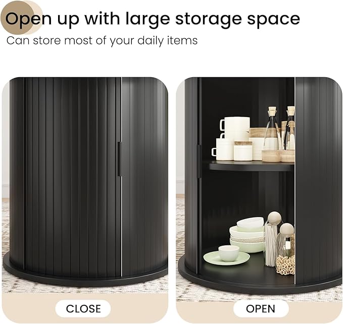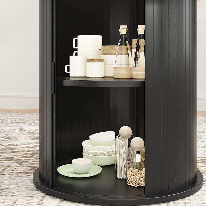 Farini 43" Round Dining Table for 4-6 with Storage Space,Modern Kitchen Room Table with Wood Top & Sturdy Metal Base,Black