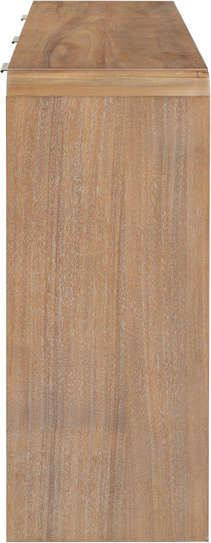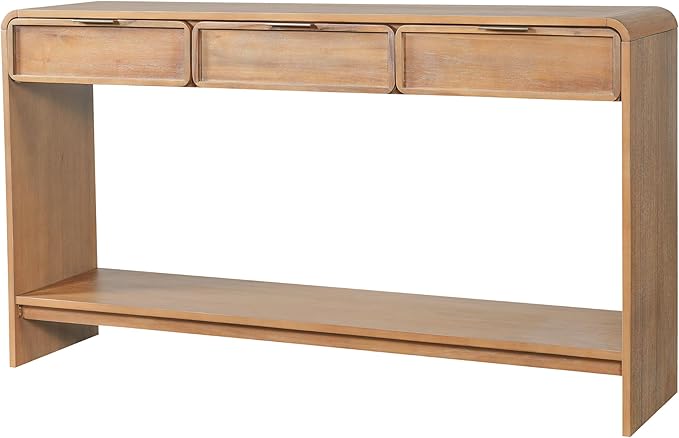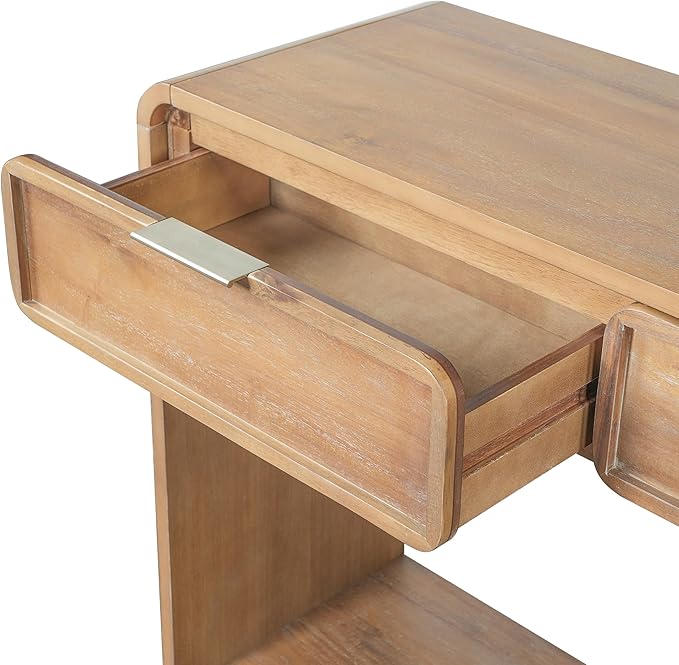 - Elegant Retro Console Table: Featuring a retro-inspired design with a classic natural finish, this console table adds timeless charm to any space. The silver drawer handles provide a sophisticated touch, allowing the table to complement décor styles from vintage and rustic to modern and transitional with ease