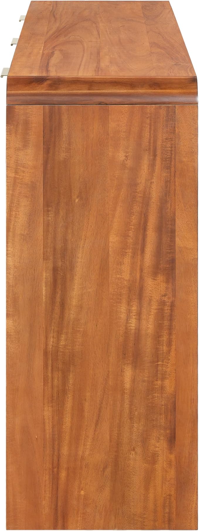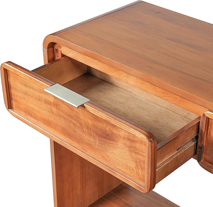 - Elegant Retro Console Table: Featuring a retro-inspired design with a classic natural finish, this console table adds timeless charm to any space. The silver drawer handles provide a sophisticated touch, allowing the table to complement décor styles from vintage and rustic to modern and transitional with ease