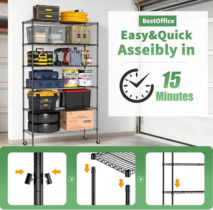 - Easy to assemble: Our wire shelving storage shelf is Simple, tool-free setup with slip-sleeve locking mechanisms that allow quick shelf adjustments.Comes with simple, step-by-step instructions that guide you through the entire installation process. Each component is clearly labeled, allowing even first-time users to assemble the rack in minutes without confusion.