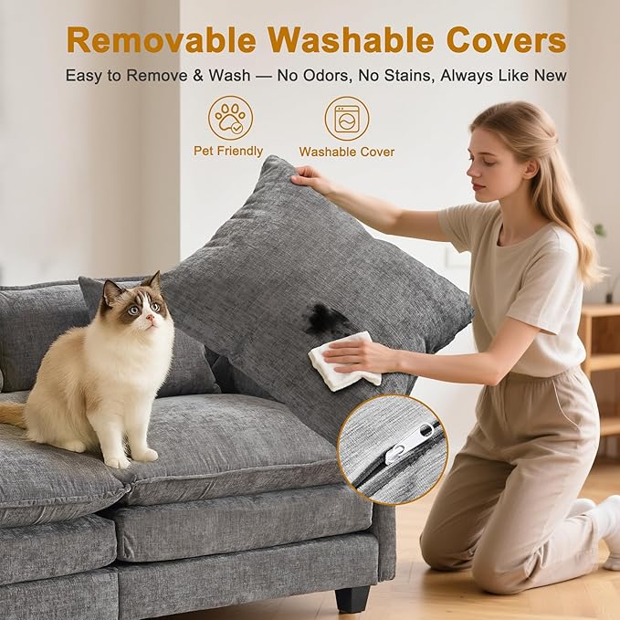 - 【Cloud-Like Comfort & Softness】The cushions of this sofa are both plush and supportive, contouring to your shape. It's constructed from luxurious chenille fabric with silky microfibers, giving it an incredibly soft feel.