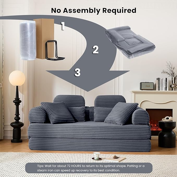 Convertible Sofa Bed,79'' Foldable Sleeper Lounge Modular Couch Comfort Compression Sofa Loveseat for Small Spaces Comfort for Apartment Bedroom (Corduroy Fabric, Dark Grey1)