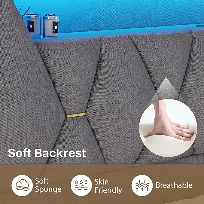 • 【Smart RGB LED Mood Lighting】Create the perfect ambiance with the multifunctional LED light strips on this black bed frame. Choose from over 60,000 colors and control them via Mobile App or Remote. Set brightness, colors, modes, and timers to transform your california king bed frame with headboard into a personalized retreat