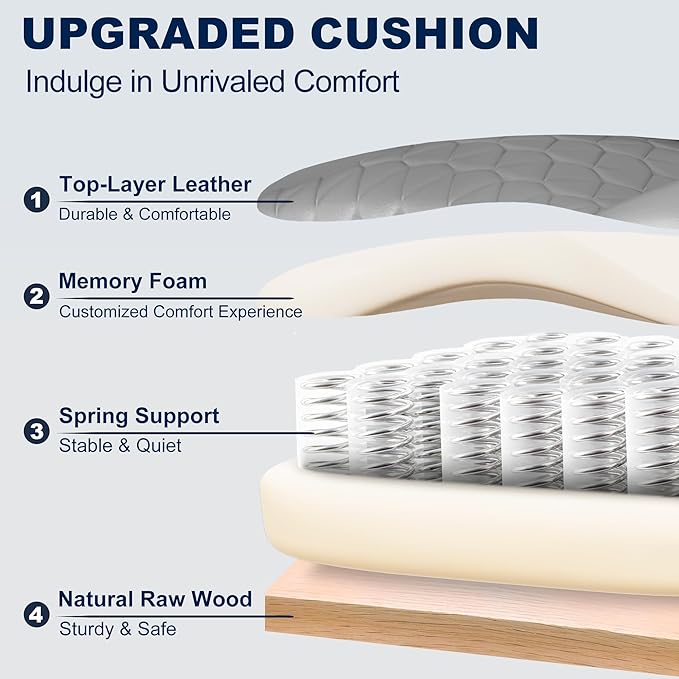 - Cloud-Like Seating Comfort with Skin-Friendly Upholstery: This Office Desk chair’s hybrid thickened cushion combines high-density sponge and durable coil springs for a perfect mix of softness and stability. Its premium synthetic leather upholstery is smooth, skin-friendly, and easy to wipe clean, ensuring a cozy and hygienic seating experience for daily use.